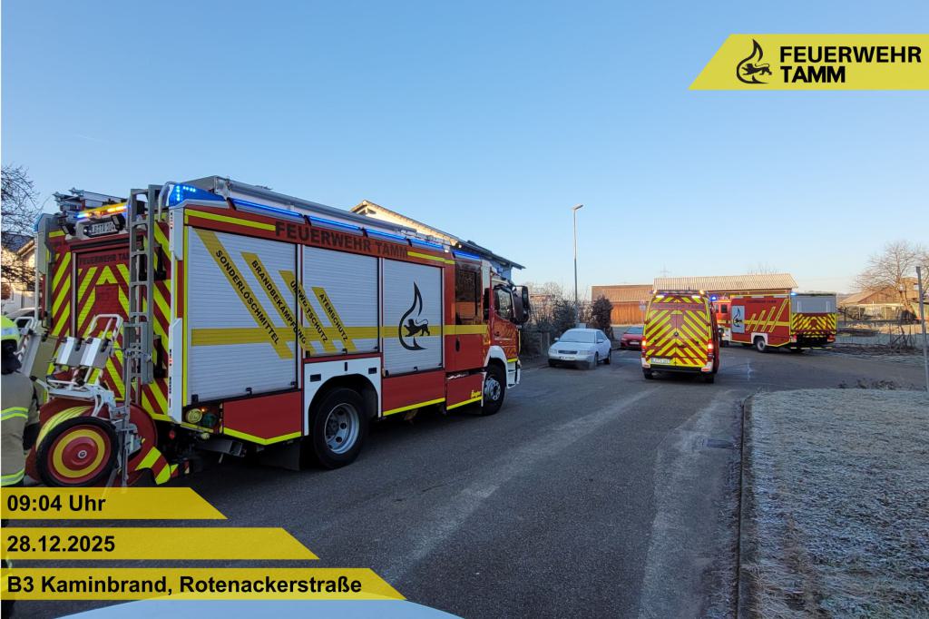 Die Feuerwehr Tamm wurde zu einem Kaminbrand in einem Mehrfamilienhaus in die Rotenackerstraße alarmiert.