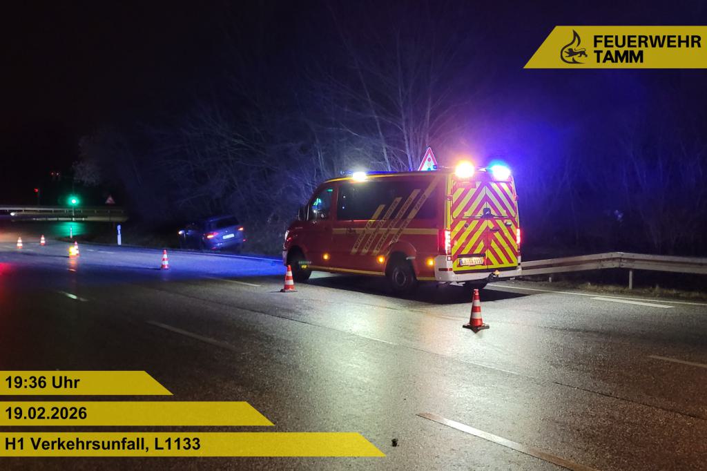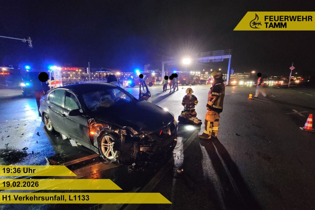 Im Kreuzungsbereich kollidierten zwei PKW miteinander. Einer der beiden PKW blieb im Seitenstreifen liegen. Die Feuerwehr Tamm sicherte die Einsatzstelle ab und stellte den Brandschutz an der Einsatzstelle. Zudem wurde der Rettungsdienst bei seinen Maßnahmen unterstützt und die verletzten Personen betreut. Ausgelaufene Betriebsstoffe wurden mittels Bindemitteln aufgenommen.