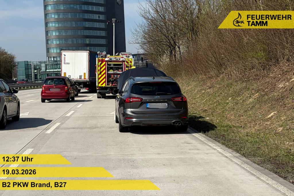 Die Feuerwehr Tamm wurde zu einem PKW Brand auf die B27 alarmiert.