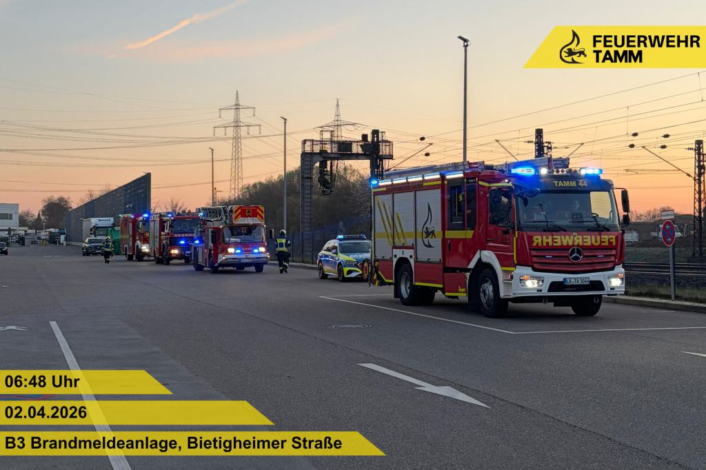 Die Feuerwehr Tamm wurde zu einer ausgelösten Brandmeldeanlage in die Bietigheimer Straße alarmiert.