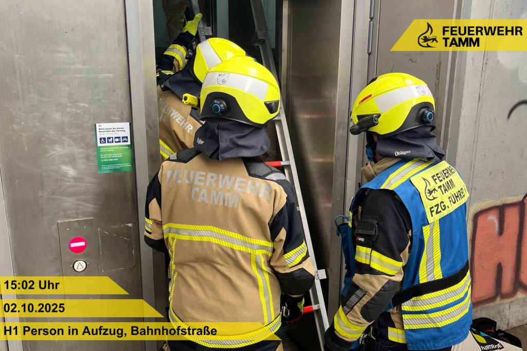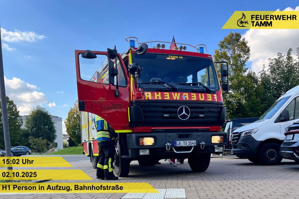 Die Feuerwehr Tamm wurde zu einer in einem Aufzug eingeschlossenen Person in die Bahnhofstraße alarmiert.