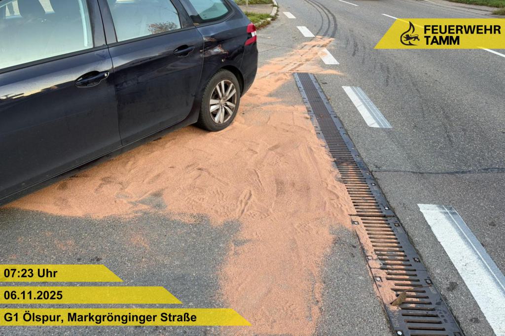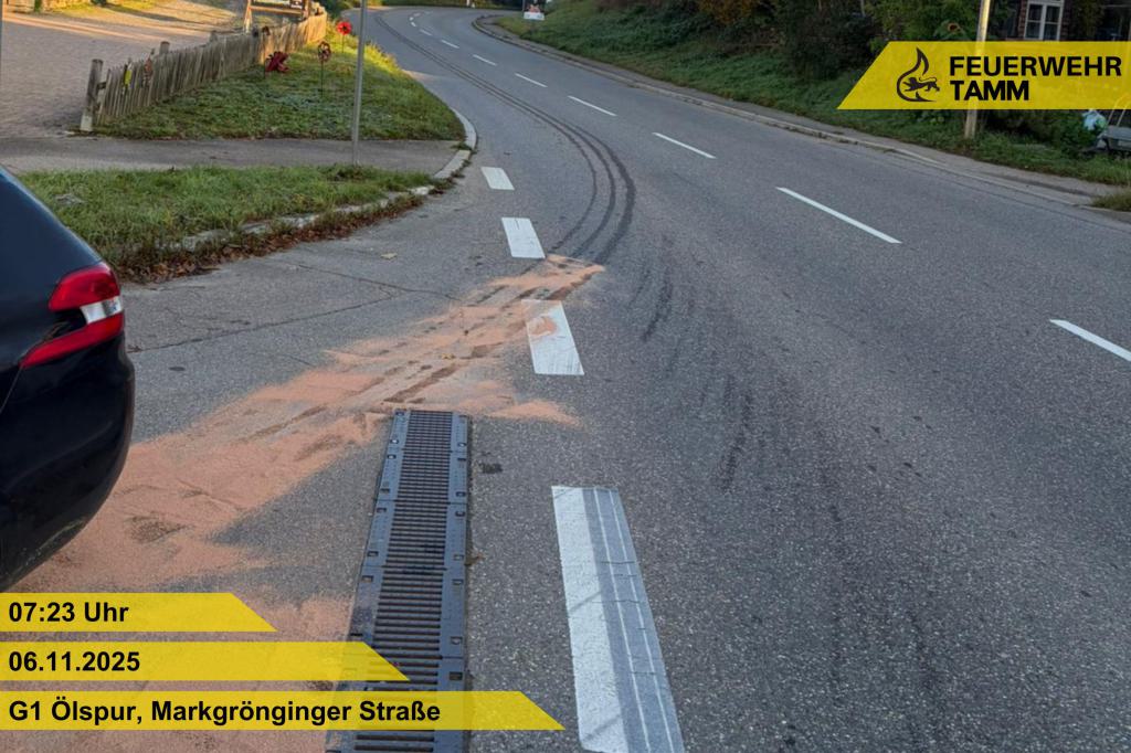 Die Feuerwehr Tamm wurde zu einer Ölspur in die Markgröninger Straße alarmiert.