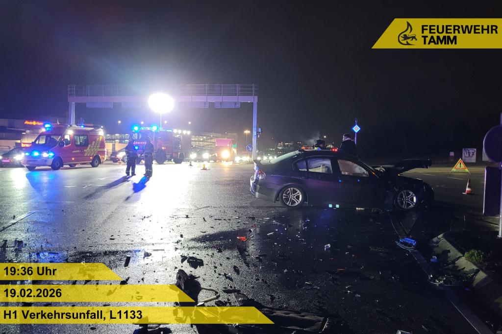 Im Kreuzungsbereich kollidierten zwei PKW miteinander. Einer der beiden PKW blieb im Seitenstreifen liegen. Die Feuerwehr Tamm sicherte die Einsatzstelle ab und stellte den Brandschutz an der Einsatzstelle. Zudem wurde der Rettungsdienst bei seinen Maßnahmen unterstützt und die verletzten Personen betreut. Ausgelaufene Betriebsstoffe wurden mittels Bindemitteln aufgenommen.