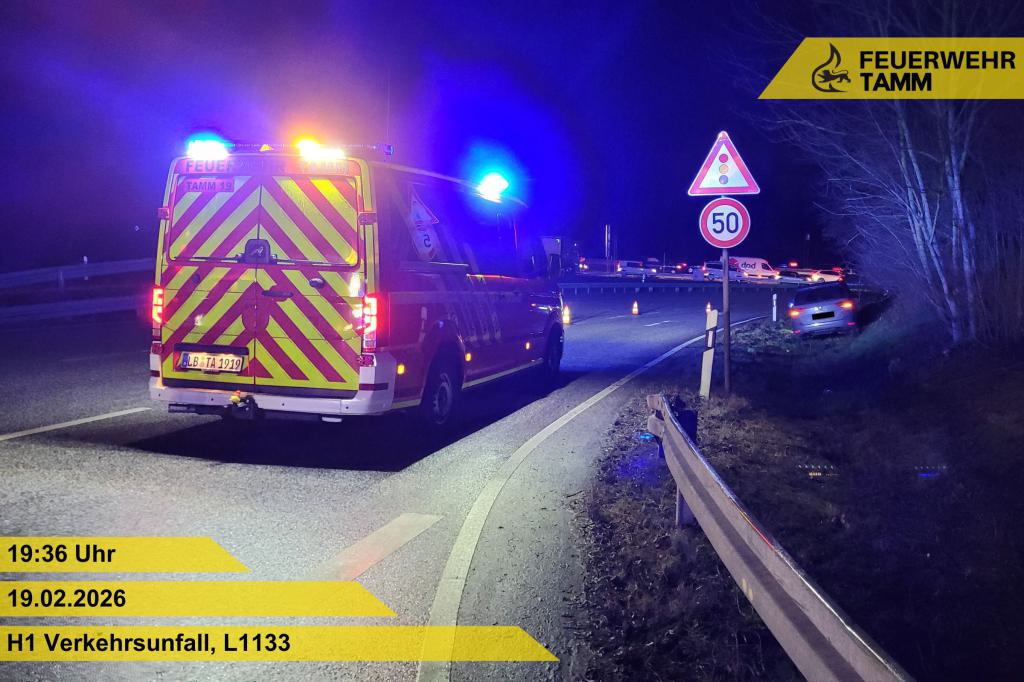 Die Feuerwehr Tamm wurde zu einem Verkehrsunfall an der Kreuzung L1133 und Frankfurter Straße alarmiert.