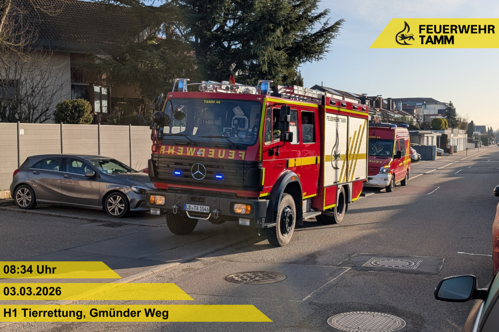 Die Feuerwehr Tamm wurde zu einer Tierrettung in den Gmünder Weg alarmiert.
