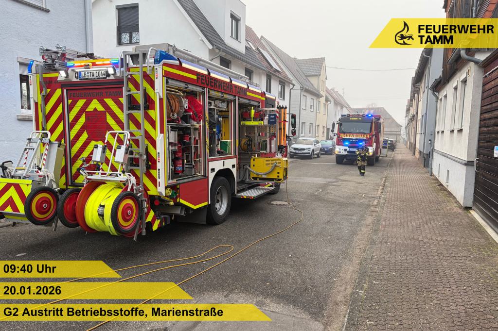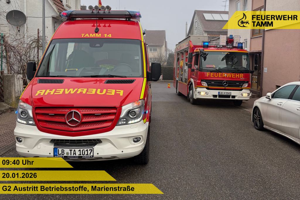 Die Feuerwehr Tamm wurde zu auslaufendem Heizöl in einem Mehrfamilienhaus in der Marienstraße alarmiert.